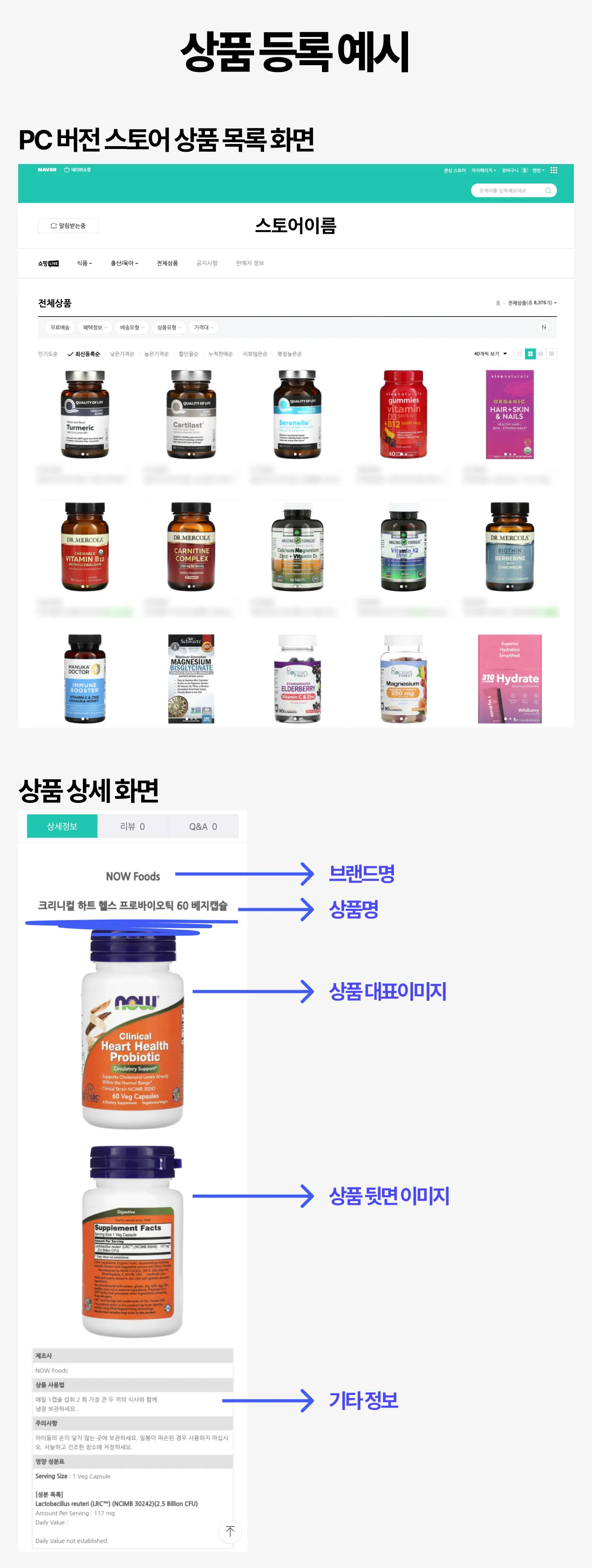상품 상세 페이지에는 과대광고 우려가 없는 상품에 대한 객관적인 기본 정보 이미지만 들어갑니다. 효능 효과 동영상 등 판매 향상을 위한 추가 정보는 셀러님의 판단하에 업로드하여 사용해주세요!