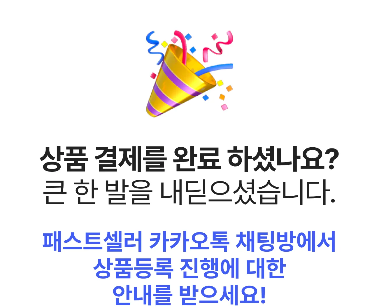 패스트셀러 카카오톡 채팅방에서 [상품 결제했습니다] 라고 메시지 남겨주시면 빠르게 안내드리겠습니다!