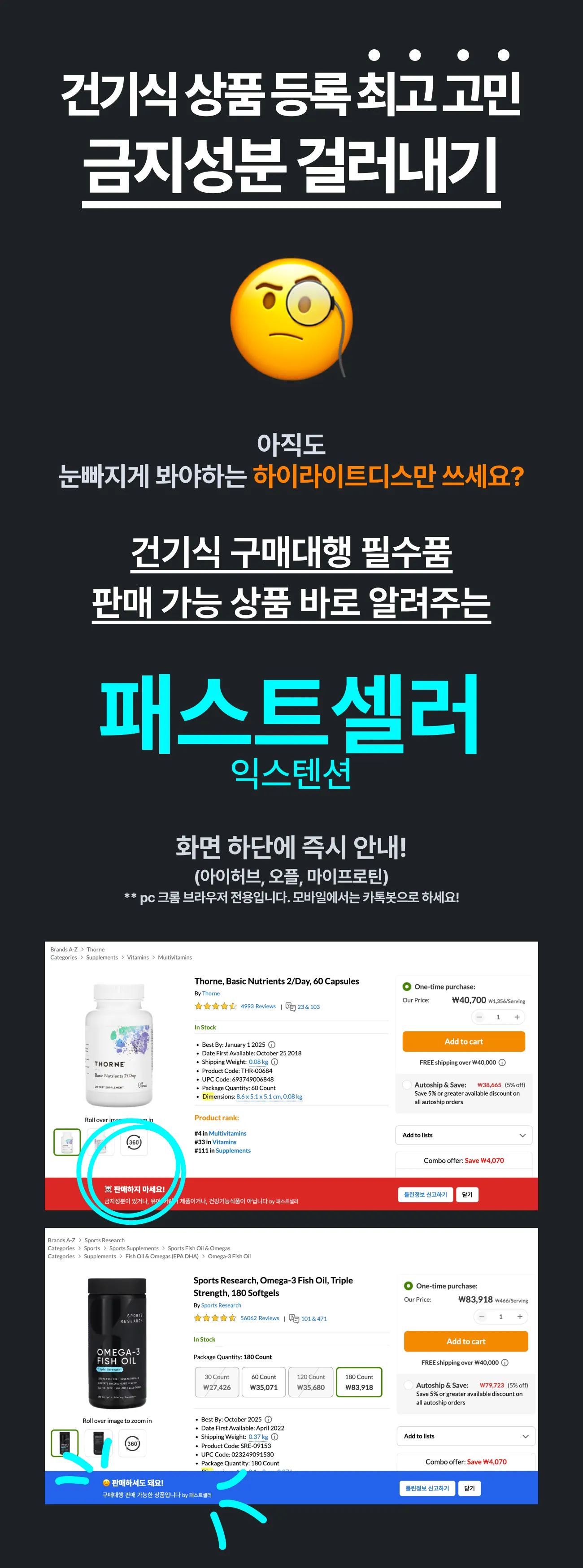 써보신 분들은 모두가 놀라시는 명확함! 패스트셀러 익스텐션 설치만 하면 끝!