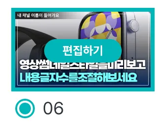 총 10가지 썸네일 스타일 선택을 통하여 더 시선을 끄는 썸네일을 쉽게 만들 수 있습니다. 예를 들어, 6번 썸네일을 선택하는 경우, 06번 버튼을 누르고 ‘편집하기’를 누르면 팝업이 뜨면서 아래와 같이 내용을 입력하실 수 있습니다.