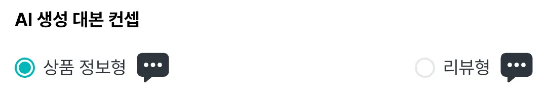 패스트컷은 입력된 상품의 링크를 바탕으로 정보를 수집하여, AI를 이용하여 영상의 대본을 만듭니다. 이 때 대본 컨셉을 ‘상품 정보형’ 또는 ‘리뷰형’으로 선택할 수 있습니다.