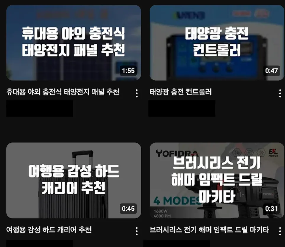패스트컷을 이용하여 영상을 만들 경우 유튜브 채널에 들어가면 아래와 같이 동영상들이 보이고 시청자들이 이 중 하나를 선택해서 보도록 되어 있습니다.