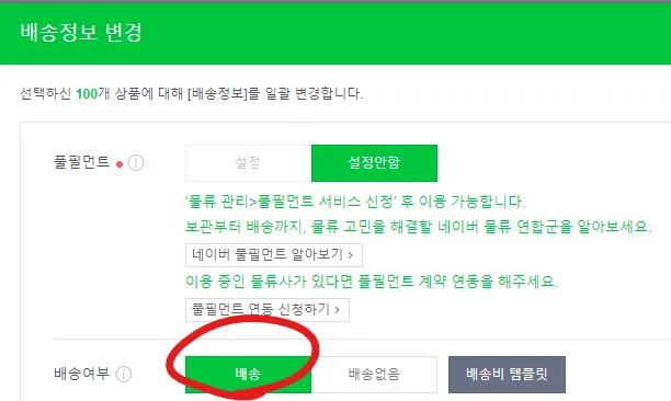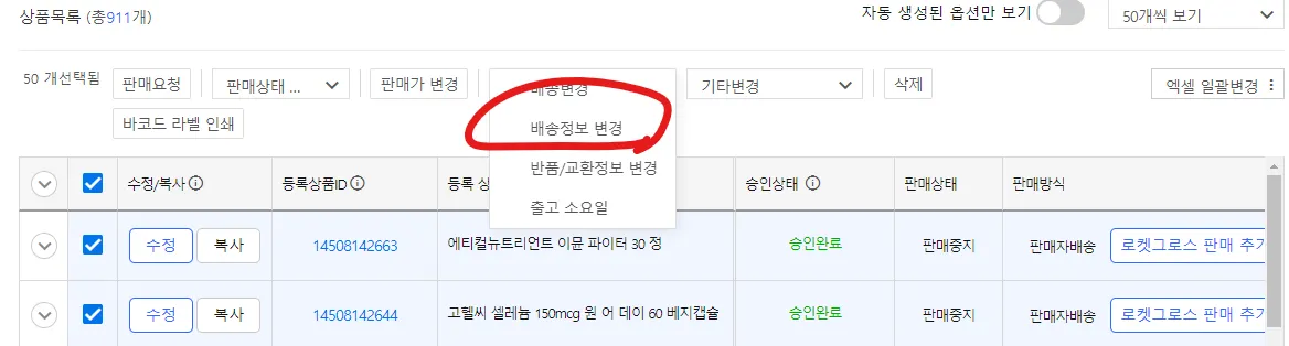 2. 배송변경 버튼을 통한 일괄 배송정책 수정