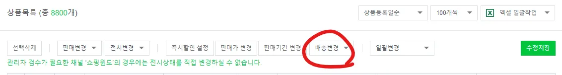 2. 배송변경 버튼을 통한 일괄 가격수정