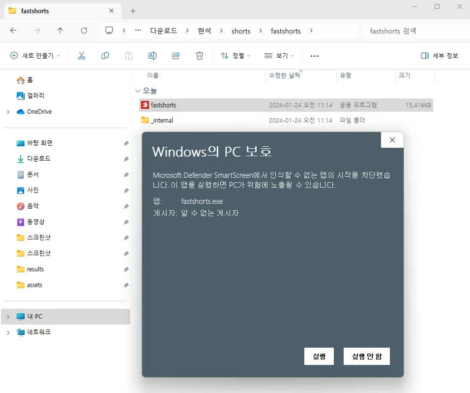패스트쇼츠는 악성코드를 전혀 포함하지 않습니다. 단지 마이크로소프트 스토어를 통해 다운로드받지 않았기에 인증서가 없어 검사시 검출될 수 있습니다.