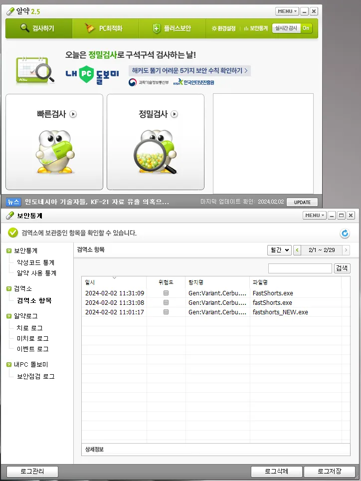 파일명을 확인하고 FastShorts.exe인 경우 치료하지 마세요.
