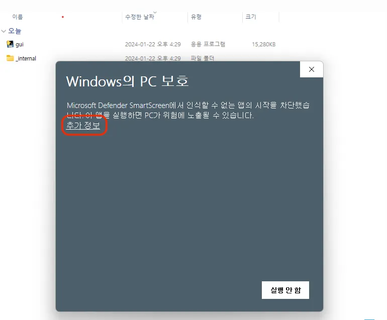 검역소>해당 파일 클릭> 탐지제외를 선택합니다.