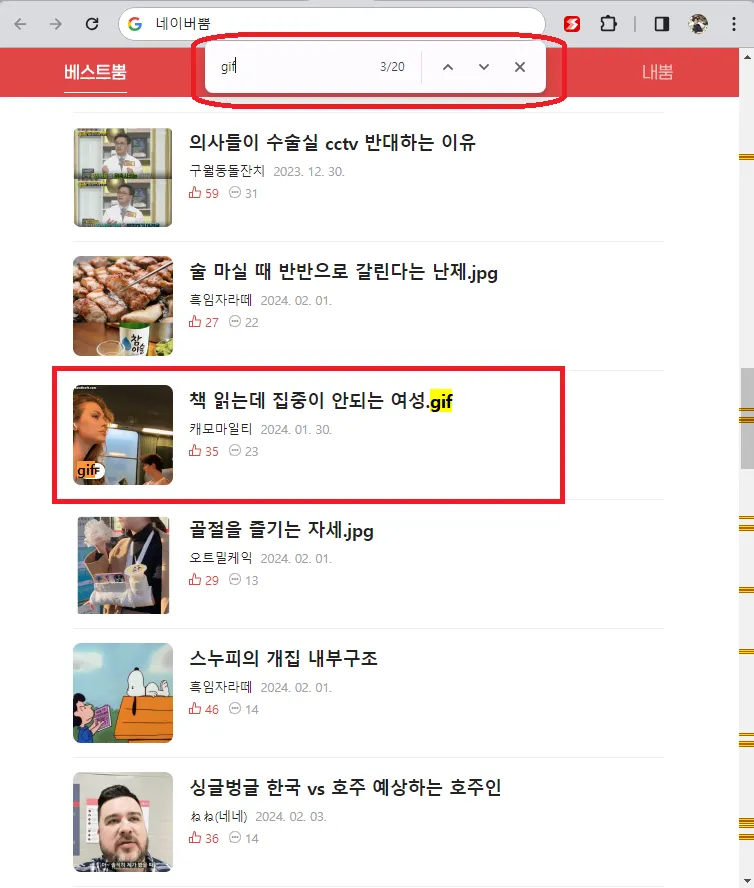 ctrfl+f 로 gif를 검색해서 gif 가 포함된 게시물에 들어갑니다.