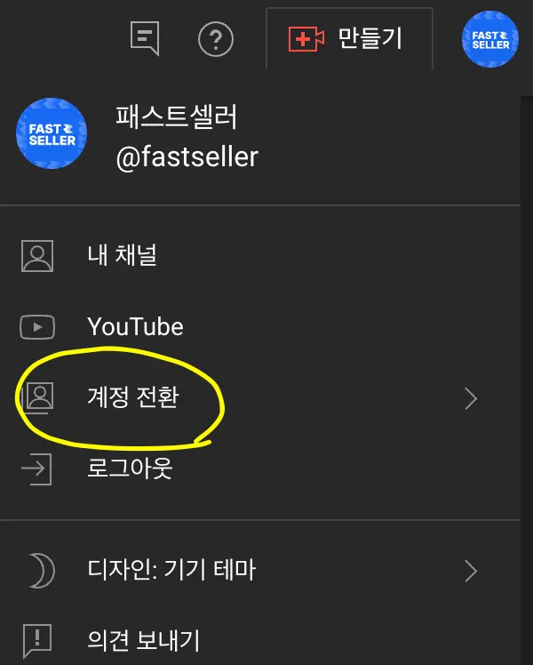 로그인한 상태에서 우측 상단 프로필 모양을 클릭합니다.