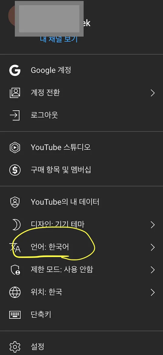 3. 유튜브 언어는 ‘한국어’로 설정하기
