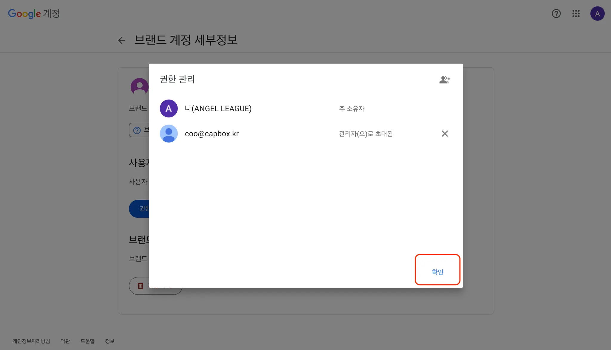 초대 받은 사람이 수락하면 권한 부여가 완료됩니다. 부여된 권한은 언제든지 삭제할 수 있습니다.