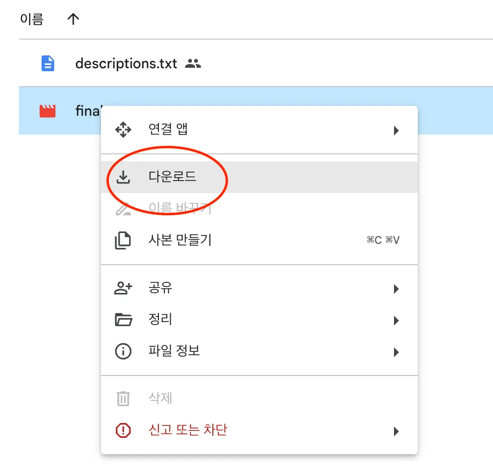 아래와 같이 위 두 파일들을 마우스 오른쪽 버튼을 눌러 컴퓨터에 다운로드 받습니다.