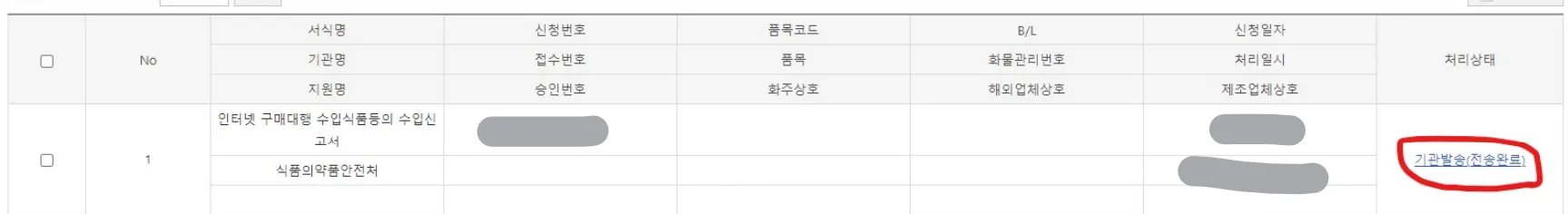 신청 직후에는 ‘기관발송(전송완료)’가 뜨고