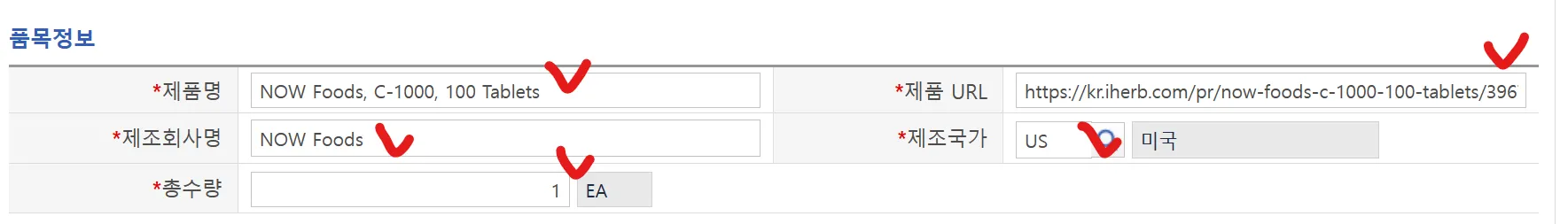 품목정보 란에 구매대행 하시는 상품의 상세사항을 넣어주시면 됩니다. 이때 한글로 넣지 마시고, 아이허브의 언어를 영어로 변경하셔서 영문 상품명을 넣으시기 바랍니다. 영문이 아니라 한글로 상품명을 넣으시는 경우 신고가 거절됩니다.