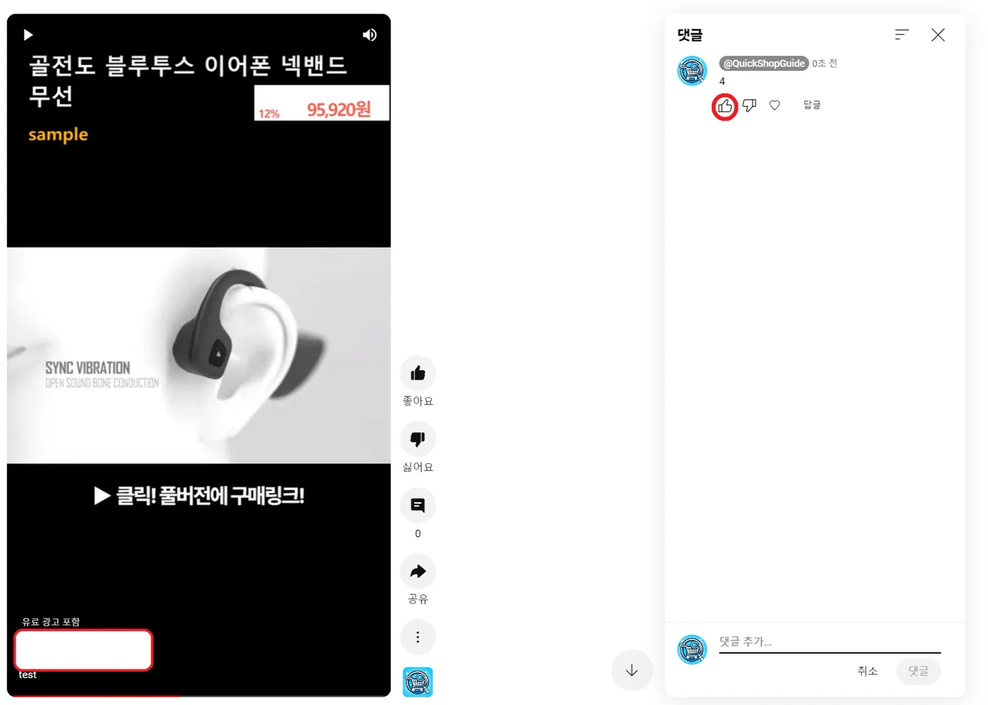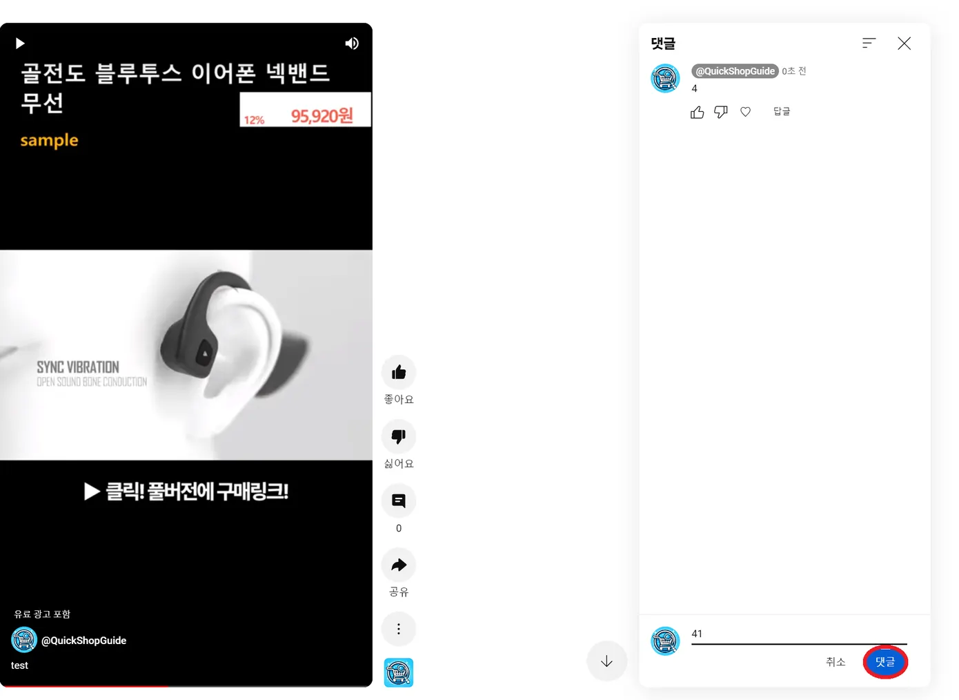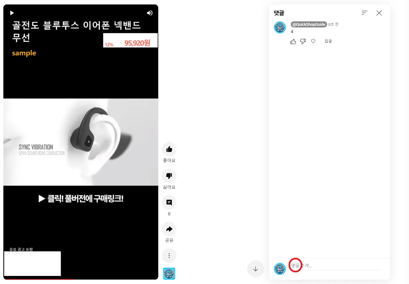 우측 하단의 파란색 “댓글” 위에 마우스 커서를 두고 키보드의 숫자 4를 입력하고, 해당 버튼을 선택합니다.
