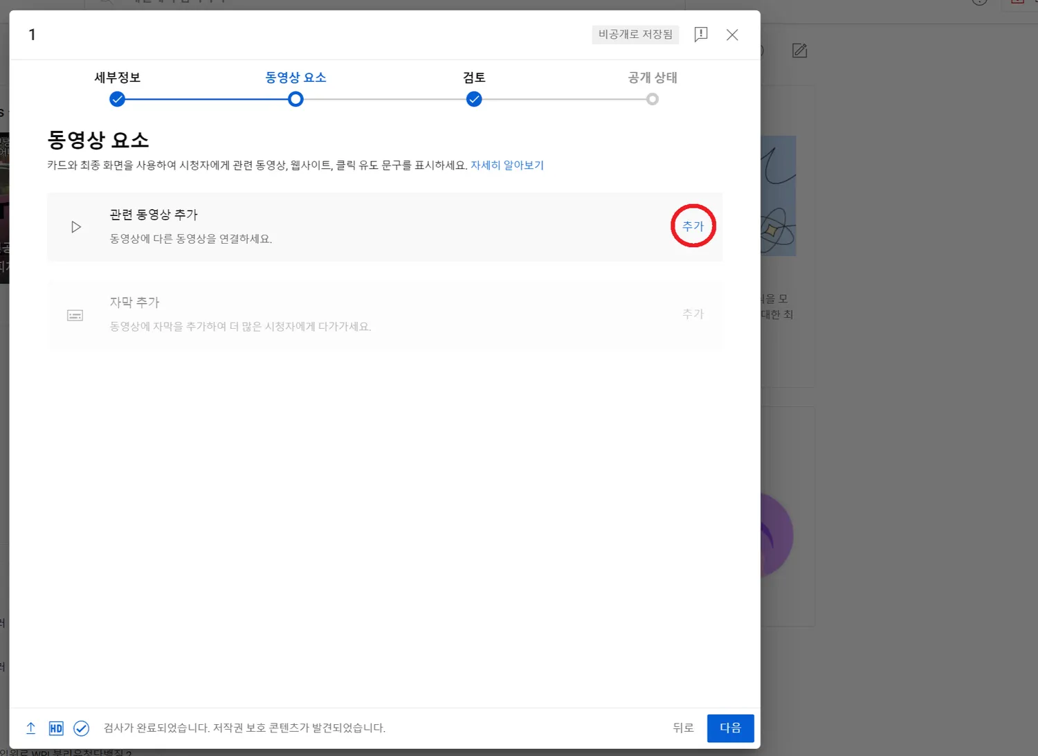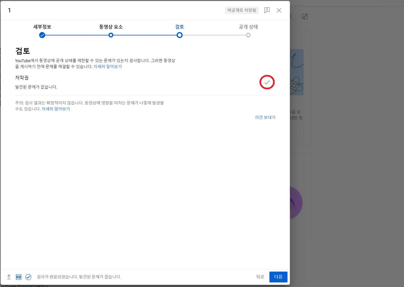 우측하단 다음버튼을 눌러서 검토페이지로 이동합니다. 그리고 “초록색 체크표시” 위에 마우스 커서를 두고 키보드의 숫자 1을 누르고 하단의 다음 버튼을 선택 합니다.