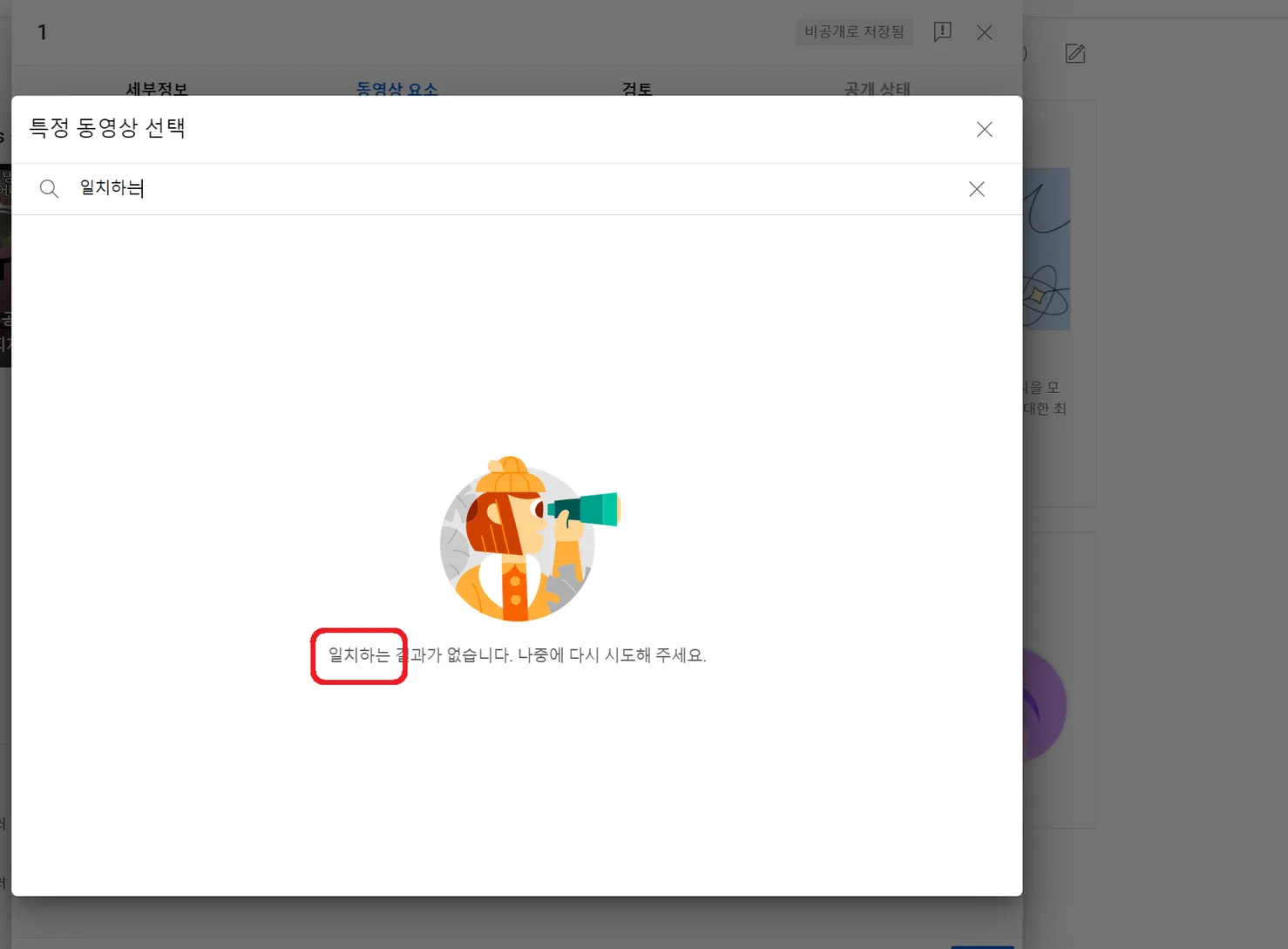 검색창에있는 “내 동영상 검색” 글씨 위에 마우스 커서를 두고 키보드의 숫자 1을 누릅니다.