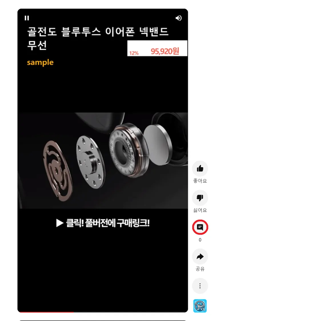 새창에서 댓글 아이콘 위에 마우스 커서를 두고 키보드의 숫자 1을 누르고, 해당 아이콘을 선택합니다.